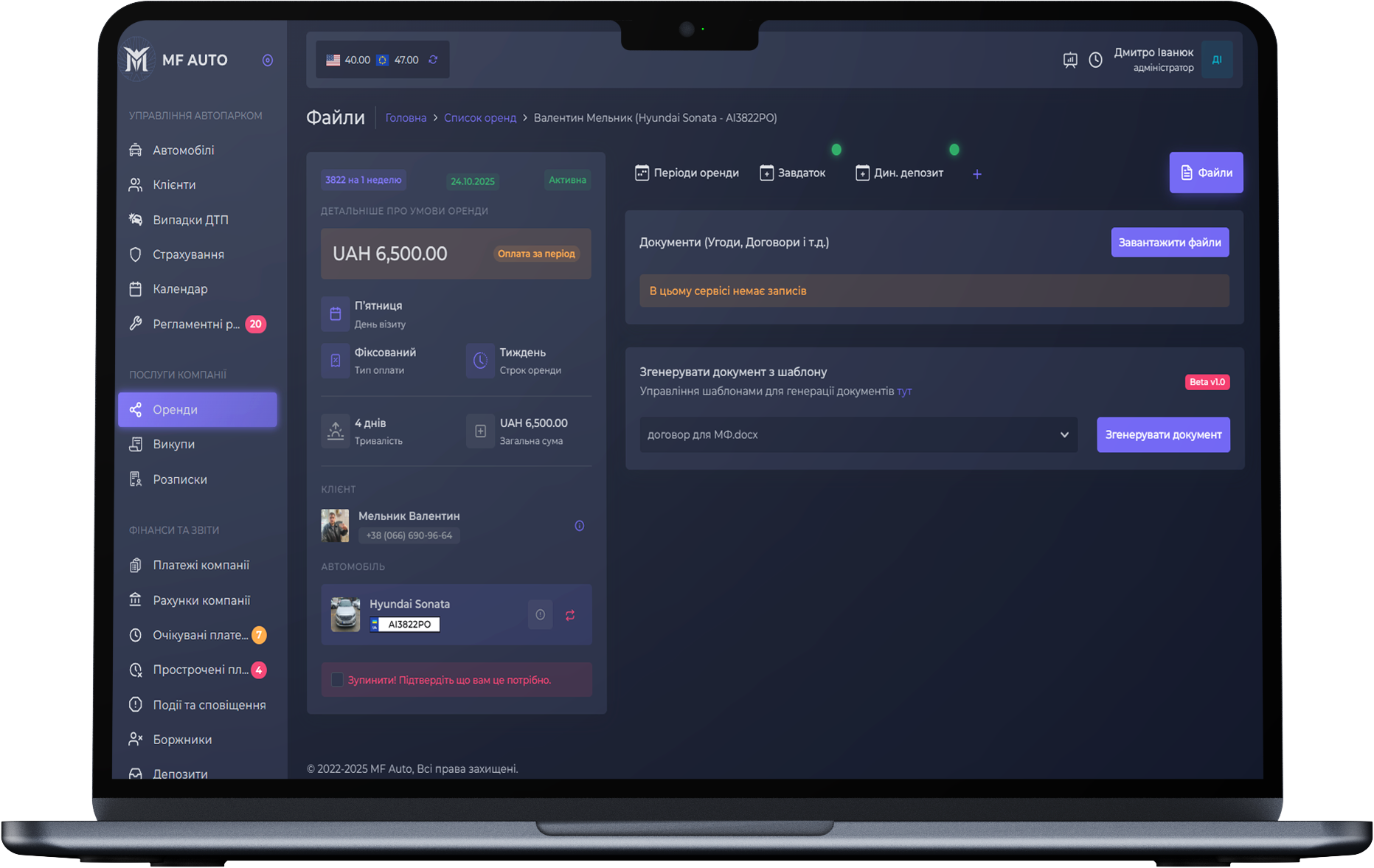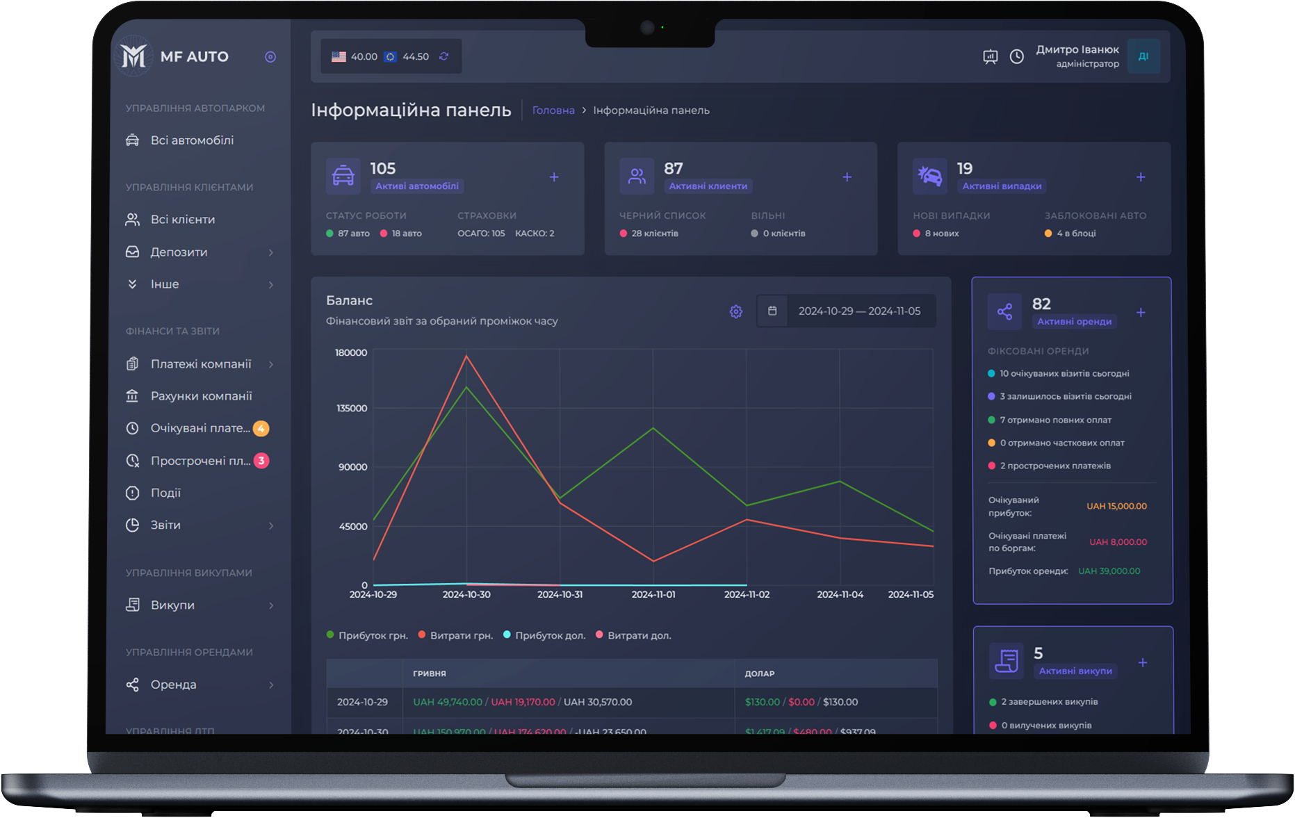 MF AUTO - это решение для автопарков разного рода и размера, занимающихся арендой автомобилей и/или лизингом (выкупом).