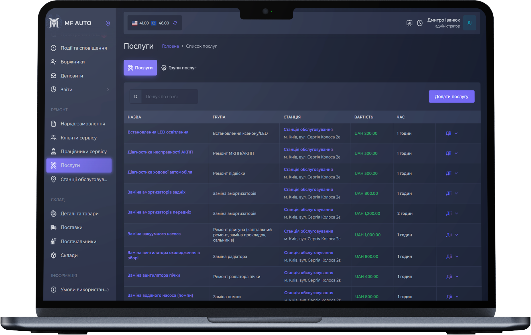 Создавая сервисную станцию, вы имеете возможность привязать к ней ряд услуг, которые она предоставляет вашим клиентам, с определённой стоимостью.