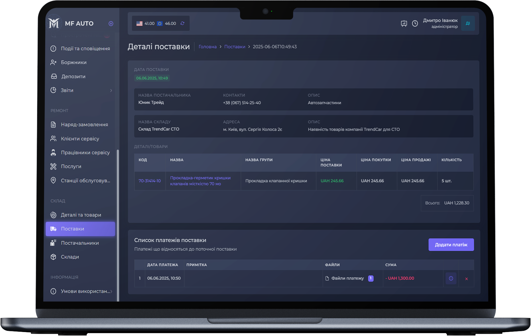 После выполнения работ менеджер имеет возможность зафиксировать оплату за работы и запчасти, что отобразится в общей системе платежей и на счетах.